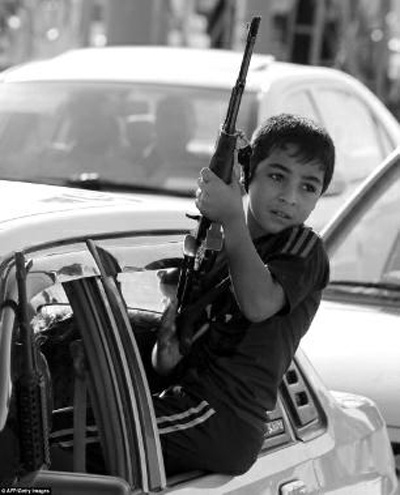 伊拉克:8岁男童挥舞自动步枪在街头巡逻(图)