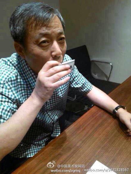 刘益谦在现场直接用鸡缸杯饮茶以示庆祝