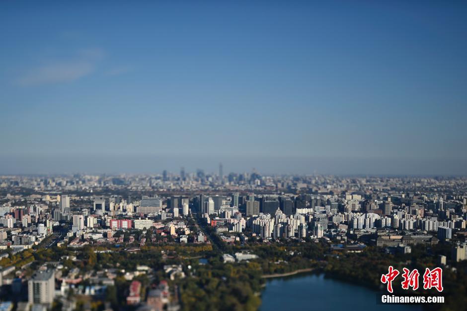 11月6日,从两百多米高的中央电视塔观景台环顾北京城,蓝天绽放。中新社发廖攀摄