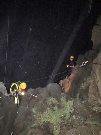新北市消防局第六大队出动40名消防员救援,还请空勤总队派出直升机照明。消防员发现4人时,水深仅到脚踝,可涉水而过,于是消防员先将6岁的小男孩背到岸边岩柱。