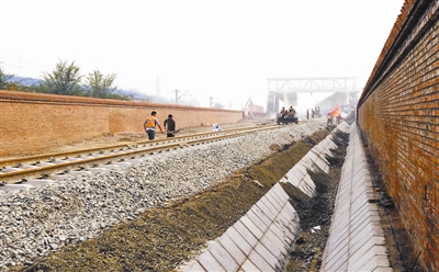 昨天的施工现场仍然一片忙碌景象,在新铺铁路线旁,一面鲜红的“铁道班”红旗插在地上,身穿反光防护背心的铁路建设者们个个干劲十足,手下一刻不停。据了解,新建黄土店临时客站主要为S2线客车提供始发终到作业。黄土店临时客场位于黄土店站东南角,紧邻地铁13号线霍营站。临客车站设置2条到发线,新建过渡站房1座,站房设置于基本站台西端,距离地铁霍营站G4出口110米。