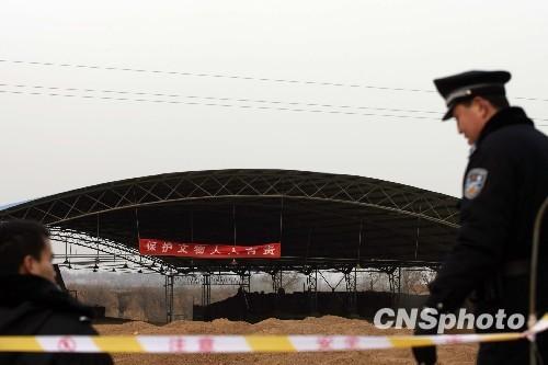 1月5日,公安特警在安阳曹操高陵发掘现场值勤,此地由当地警方24小时严密把守,外人一律不得入内。 中新社发 王中举 摄