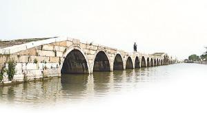 总体而言,江苏境内的古桥,南方比北方保存得要好。省文物局文保处副处长束有春介绍说,目前江苏被列为各级文保单位的200座左右的古桥,主要分布在苏、锡、常、宁、镇等地,其中省级文保单位以上的古桥有26座(组),苏州有14处独占鳌头,而淮河以北的只有徐州铜山县利国镇的白家桥。这座22米长的三孔石桥坡度平缓,为元代所建,已有600岁高龄。利国盛产铁矿,汉代就在此设立“铁官”,北宋时一跃成为全国四大炼铁基地之一,大将狄青曾在此锻造盔甲。白家桥正是为运输铁矿石而建,连桥下的河也叫做古运铁河。
