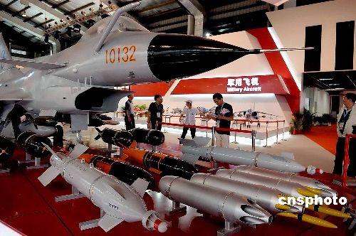 资料图片:去年11月4日,第七届中国国际航空航天博览会开幕,倍受关注的中国“歼十”歼击机亮相,并做飞行表演。图为展馆展示“歼十”歼击机所携弹头 。 中新社发 陈文 摄