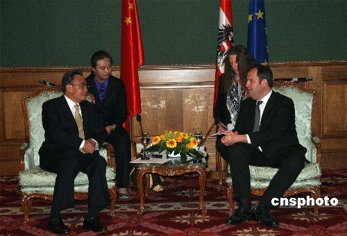 中新社维也纳五月十六日电(记者 齐彬)中国全国人大常委会委员长吴邦国,十六日在维也纳会见了奥地利代总理普约尔,就应对国际金融危机、加强两国经贸合作等问题深入交换了意见。