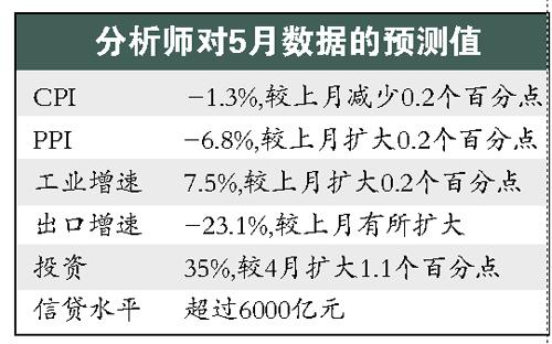 从今日开始,包括CPI(工业品出厂价格)、PPI(居民消费价格)、消费、信贷、投资、进出口等一系列数据在内的5月份宏观经济指标将陆续出炉。多数专家认为平稳或稳中有升将成为经济数据变化的主调。