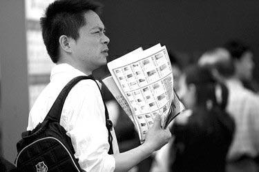 在“2009春季上海一、二手房交易展示会”上,购房者观望气氛依旧很浓 陈意俊