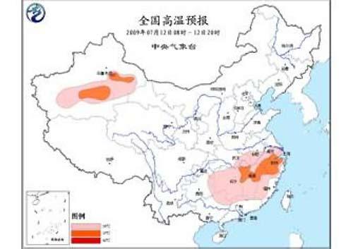 中新网7月12日电 中央气象台今日06时继续发布高温橙色警报:预计,今天白天,江南大部、湖北东南部、广西北部、广东北部、福建中北部、南疆盆地等地将有35℃以上的高温。