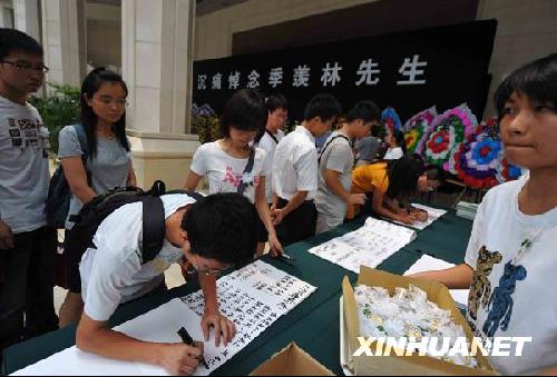 7月12日,公众在北京大学百年讲堂纪念大厅吊唁季羡林先生。新华社记者罗晓光摄