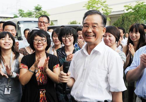 22日下午,在浙江艾莱依集团生产车间门口,正在这里考察的温家宝总理满足了企业员工希望他为“心灵收纳器”许个愿的期望。话音刚落,大家激动地鼓起掌来。