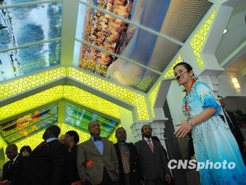 馆内大量真实的图片、物品和影像资料,让到场的参观者们深刻的体会到,新中国建国六十年来,五大自治区人民的生活越来越富裕和安康。各自治区展区邀请了民族问题专家在现场与使节们进行交流。内蒙古展区还精心为使节们安排了赋有民族特色的马头琴弹奏和女声歌唱表演,新疆展区摆放展示了六套做工精致、外观华丽的维吾尔族特有的民族服装。