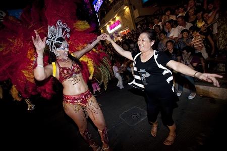 桑巴女郎与市民一起翩翩起舞。早报记者 鲁海涛 图