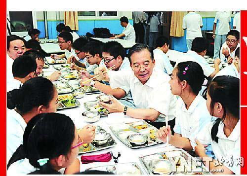 中午,温爷爷还愉快地和我们一起在学校食堂就餐,他真是一个可亲可敬、没有一点架子的总理爷爷!在离开学校之前,我们聆听爷爷的谆谆教诲,温爷爷大声地告诉我们:“孩子们,我爱你们!”那声音具有无穷的磁力,深深植入我们每一位老师和同学的心。