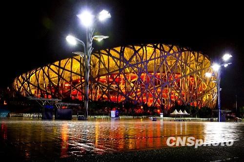 为庆祝建国60周年,自9月5日始,鸟巢夜景灯光全部打开,整个鸟巢建筑灯火辉煌,十分壮观。 中新社发 张景珍 摄