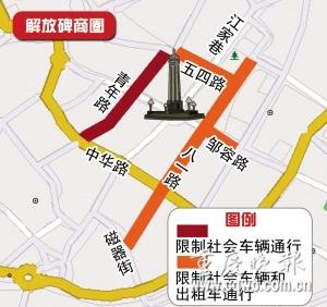 本报讯 昨日,市公安交管局透露,国庆期间,为避免部分商圈因人流、车流骤增引发安全事故,公安部门将对几大商圈的部分区域和路段实施限行。