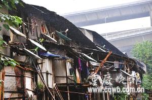 菜园坝棚屋顶上层层叠叠的山寨锅盖 记者 冉文 摄