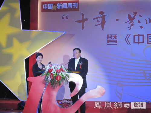 凤凰卫视董事局主席及行政总裁刘长乐(右)在《中国新闻周刊》颁奖礼上