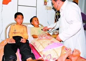 在病床上输液的孩子