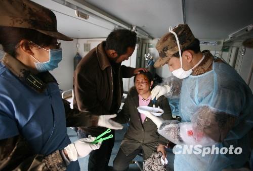 2010年4月16日,青海省玉树藏族自治州玉树县地震发生第三天,玉树城内各个安置点正在为受灾民众处理伤情。中新社发 刘忠俊 摄