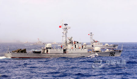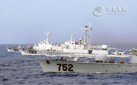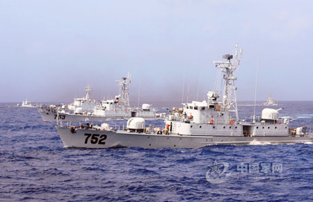 3月2日,南海舰队某导弹护卫艇大队舰艇编队开赴大海深处,与兄弟单位登陆舰、猎潜艇、护卫艇等部队开展联训,先后完成了编队综合防御、协同攻击、电子战等高难课目演练, 着力提升部队密切协同和快速打击的实战能力。图为该大队舰艇与兄弟单位舰船组成编队进行快速出击的场景。 中国军网发 袁永东 摄