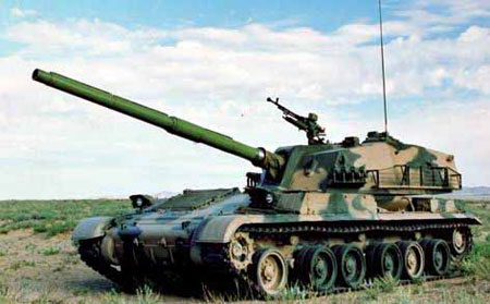 89式自行反坦克炮装备一门自行研制的大威力120毫米滑膛反坦克炮,炮塔采用高强度铸钢炮框和装甲钢板的焊接结构。89式自行反坦克炮战斗全重31吨,车体配用382KW(520马力)的发动机。
