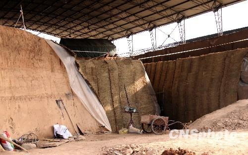 2009年12月28日,一名警察在魏武王曹操高陵挖掘现场值勤。河南省文物考古研究所在安阳县安丰乡西高穴村抢救性发掘的一座东汉大墓,经权威考古学家和历史学家根据考古资料现场考证研究,确定为文献中记载的魏武王曹操高陵后,受到全国媒体关注。 中新社发 常中正 摄