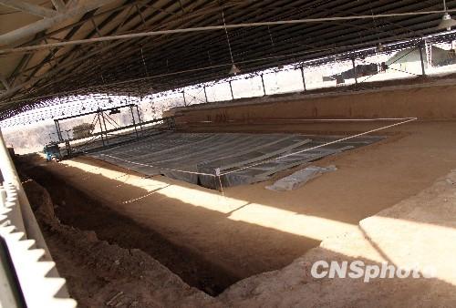 2009年12月28日,一名警察在魏武王曹操高陵挖掘现场值勤。河南省文物考古研究所在安阳县安丰乡西高穴村抢救性发掘的一座东汉大墓,经权威考古学家和历史学家根据考古资料现场考证研究,确定为文献中记载的魏武王曹操高陵后,受到全国媒体关注。 中新社发 常中正 摄
