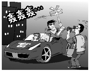 近日,不断有读者反映,在南京奥体中心北门一带,经常有一伙“富二代”车主深夜集中在此疯狂飙车,不少人开着豪华跑车,跑车的轰鸣声让附近小区内居民不堪其扰,居民们叫苦声一片。记者暗访时,富二代扬言要拿钱砸死记者。(4月11日《扬子晚报》)