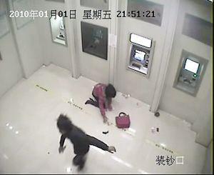 谈峰表示,根据现场情况来看,嫌疑人是刷卡进入24小时银行的,随身应携带有银行卡。记者在该所提供的一份监控材料中看到,监控探头正对取款机部分,犯罪嫌疑人蹑手蹑脚进入内部,并悄悄靠近受害人,在其身后悄无声息地藏匿了十余秒、确定钱已取出并且外部没有路人的情况下,抡起手中的砖头砸向受害人头部,“犯罪嫌疑人比较年轻,没有敢用力敲,所以导致了之后他与受害人进行厮打。”谈峰在介绍录像时表示。在监控中,经过短暂的搏斗,受害人手中的钱币散落一地,犯罪嫌疑人仓皇之间从地上摸了一把钱就逃出24小时银行逃窜而去。