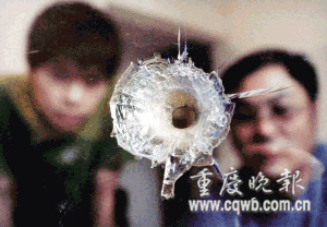 几毫米厚的窗玻璃上,出现绿豆大小的圆孔,入口小,出口大,呈放射状炸开,懂行的人都知道,这是高速旋转的子弹射穿后留下的痕迹。昨天,从万州区来主城打工的熊东保坐立不安,因为在他的租赁屋和新买尚未入住的新房窗玻璃上,都出现了这样的弹孔。