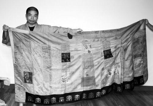 前日下午5时,记者见到了刚诵完经出来的该寺住持释慧静。三年前,慧静和师傅妙果方丈带着传了十几代的明代袈裟前往南京云锦研究所,希望能将袈裟复制一件。