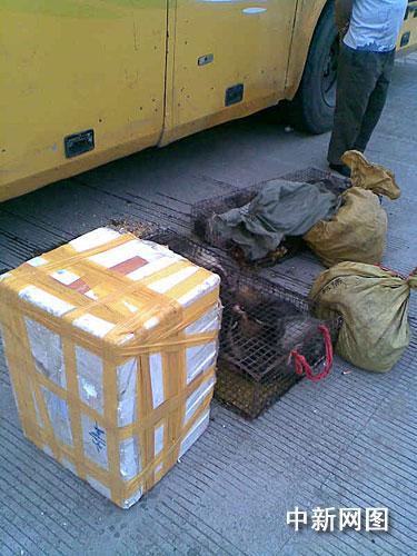 中新网长沙9月8日电(雷坤平 肖前辉)9月7日下午,一辆非法运输野生动物的长途大客车在途经湖南境内的邵怀高速公路时,被邵怀大队安江中队民警当场查获。民警从该车的行李舱中发现野生蛇类170余斤,竹鼠13只,豪猪9只。
