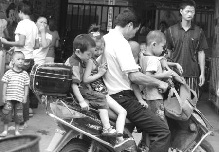 幼儿园用电动摩托车1次接送5名幼儿(图)