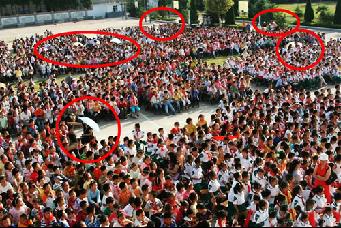 新学期开学后的一天下午,时值“秋老虎天气”,气温达到三十四度,滨海县实验小学两千余名小学生服装整齐地聚集在烈日下的大操场上举行秋学期开学典礼。次日,该县教育网站发了题为《滨海县实验小学举行2009年秋季开学典礼》的报道,随文还配发了三幅图片,其中有一图片显示,密密麻麻的学生方阵中,约有十位女教师打伞防晒。