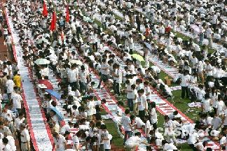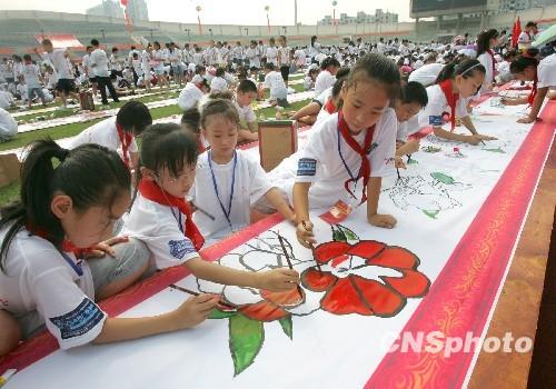 千人作画献礼国庆60周年。中新社发 郑鹏 摄