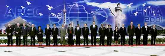 第9次领导人非正式会议于2001年10月21日在中国上海举行。中国国家主席江泽民主持会议并发表题为《加强合作,共同迎接新世纪的新挑战》的重要讲话,全面阐述了中国对当前世界和地区经济形势的看法,以及对推进APEC合作进程的主张。与会领导人以“新世纪、新挑战:参与、合作,促进共同繁荣”为主题,就当前世界经济形势以及“9·11”事件对经济发展带来的影响、人力资源能力建设和亚太经合组织未来发展方向等问题深入交换意见,达成了广泛的共识。会议通过并发表了《领导人宣言:迎接新世纪的新挑战》、《上海共识》和《数字亚太经合组织战略》等文件。与会各成员领导人还利用午餐会就反对恐怖主义问题交换了意见,并发表了《亚太经合组织领导人反恐声明》。