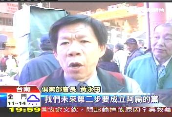 环球网记者高珲报道 台南“扁友会会长”黄永田号召众多“独派”成立了全台唯一的“阿扁们俱乐部”。黄永田说,这是阿扁“组党”的前哨站。