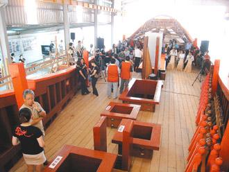 参观者在仿造的郑成功船上观看 来源:台湾《联合报》