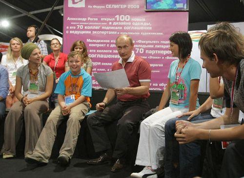 当地时间7月25日,在俄罗斯特维尔州,俄罗斯总理普京参观了在这里举行的2009国际青年夏令营。
