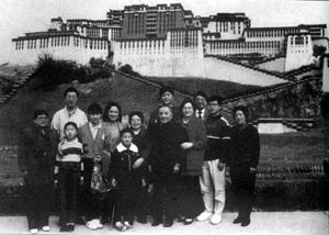 邓小平和夫人卓琳同志、女儿邓楠、邓榕及其他亲属在“锦绣中华”布达拉宫前合影