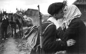 斯大林格勒保卫战时,母亲与前赴战场的孩子吻别。