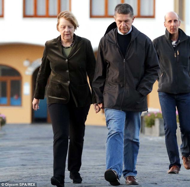 默克尔与丈夫绍尔被拍到在渔村度假照片。绍尔平素很少露面。(来源:英国《每日邮报》)