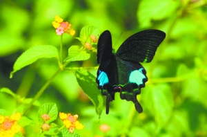 青凤蝶还常出现在庭园、街道及树林空地,很多时候它会主动在人们身边欢畅飞舞。