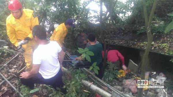 谢姓男子摔落树林密布的山沟,搜寻不易,苗县救难协会出动10多人搜救,顺利救出谢男。图片来源:台湾《中时电子报》