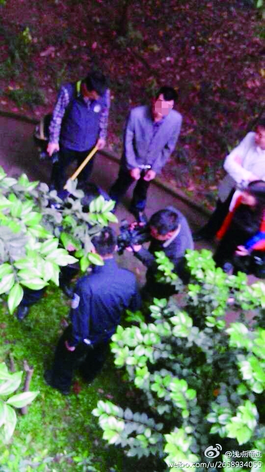 []昨天下午,“飞哥”配合警方提取作案刀具。网友供图