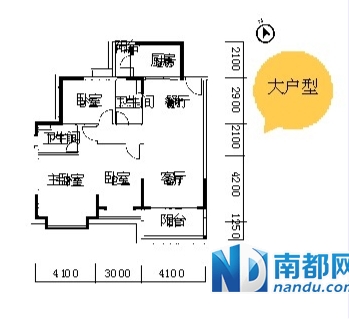 记者点评:进门可直通餐厅客厅达景观阳台,既利于采光通风,又可以欣赏南边的欧陆风园林、立体水景。因南临园林,拥有超宽楼距,视野更加开阔,采光通风也更佳。双阳台大飘窗设计,空间显得开阔舒适。