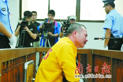 29日10点左右,年近5旬的被告人李联高被带上法庭。法官在核对被告人身份信息时,李联高一开腔就哭了出来(如图,法院供图)。法官不得不多次提醒其“控制情绪”。
