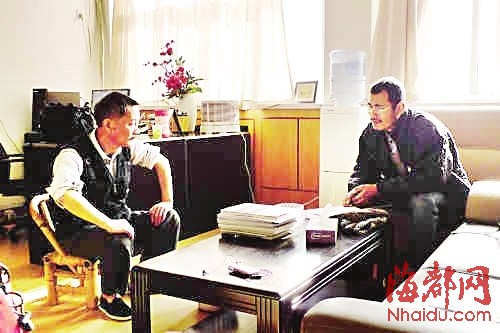 李小文(左)面试一位在海淀一处农贸市场摆摊的海归博士