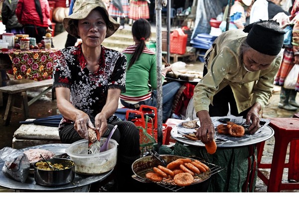 本组图摄于越南北部山区的一处乡村集市,人们都会按约定好的日子前往这里赶集,以购买自己生活所需的物品。同时三五好友也会聚集在一起,喝上几杯,聊下近况。当然这里不乏有令人垂涎三尺的美食。在越南,无论是哪里,大街上到处是卖吃食的小摊。或推一辆自行车,或挑一付竹筐,街沿、墙根、弄口、树下,小火炉、热水瓶、一张塑料矮几、几个塑料小方凳:这就是茶馆,就是米粉店,就是果汁排档……越南美食中,最负盛名的莫过于街头巷尾的地摊小吃,如越南春卷、蔗虾、越南烤肉、猪肠粉卷、牛肉河粉等,都令人吮指回味。