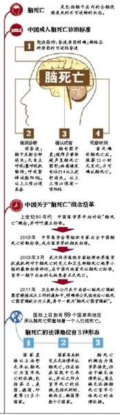 “脑死亡是最科学的死亡判定标准。”去年全国两会上,原卫生部副部长黄洁夫曾表示,我国2003年已发表了中国“脑死亡”判断标准和建议判定死亡的程序。针对器官捐献,2010年开始的试点工作采用“心死亡”和“脑死亡”两套标准并行,民众可自愿选择死亡标准。